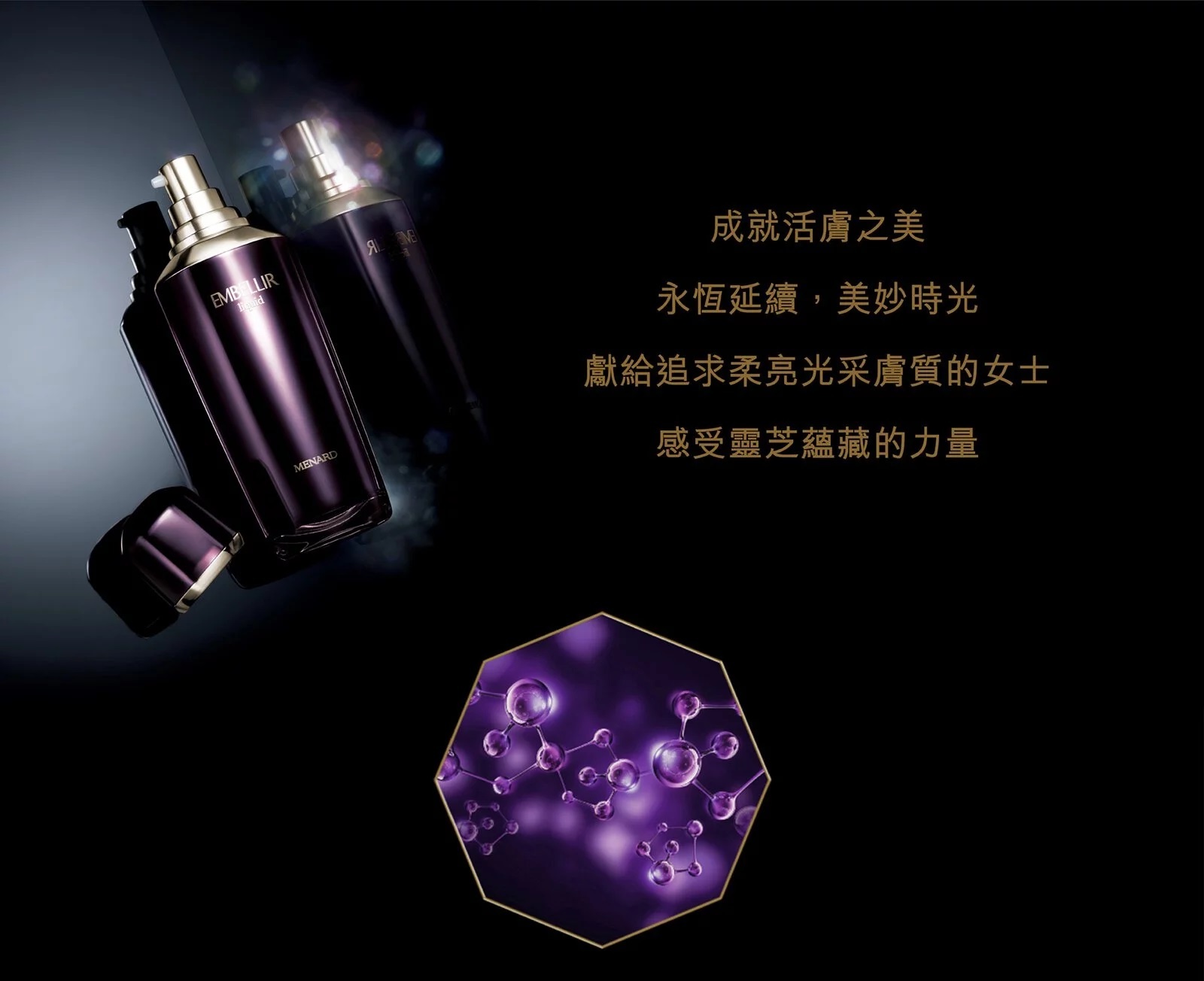獨家研發雙靈芝精華,能修復受損美肌基因,延緩衰老,改善肌膚肌能衰退,並添加羽衣草葉精華,能強化眼輪匝肌,增加彈性緊緻,針對眼部鬆弛皺紋眼部老化問題,打造全方位無死角的自信明眸。